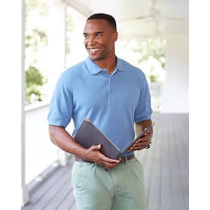 6.2 oz. preshrunk 100% cotton piqué golf shirts featuring a relaxed fit, taped neck and side vents, half-moon patch and wood-tone buttons. Perfect for a day on the golf course, a casual day in the office or running around town. Available in Navy Blue with the QCBA logo embroidered in White on the left chest.